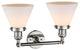 INNOVATIONS LIGHTING 208-PN-G41 Large Cone 2 Light Bath Vanity Light part of the Franklin Restoration Collection. The Large Cone 2 Light Bath Vanity Light is part of the Franklin Restoration Collection.Solid Brass 180 Degree Adjustable Swivels with internal teeth that lock in at 5 degree intervals. Collection: Franklin Restoration. Material: Steel, Cast Brass, Glass. Metal Finish(Body): Polished Nickel. Metal Finish(Canopy/Backplate): Polished Nickel. Dimension(in): 18(W) x 11(H) x 10(Ext). Bulb: (2)100 Medium Base Vintage Bulb recommended(Not Included). Voltage: 120. Glass: Matte White Cased Large Cone/Frosted. Shade Shape: Cone. Shade Material: Glass. Shade Size(in): 7.75 X 6. Shade Fitter Measurement: 3.25 inch Fitter. Canopy Dimension(in): 4.5. Backplate Dimension(in): 4.5x0.75. Solid Brass 180 Degree Adjustable Swivels with internal teeth that lock in at 5 degree intervals. Fixture can be hung with bulbs facing up or down as a Wall Mount. UL/CUL Damp Rated. Warranty: 2 Year Finish, Lifetime Electrical.