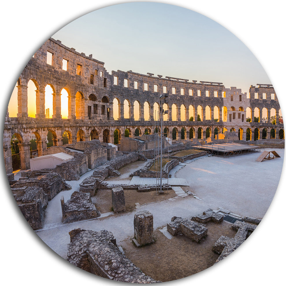 Inside Ancient Roman Amphitheater, Landscape Disc Metal Wall Art, 11"