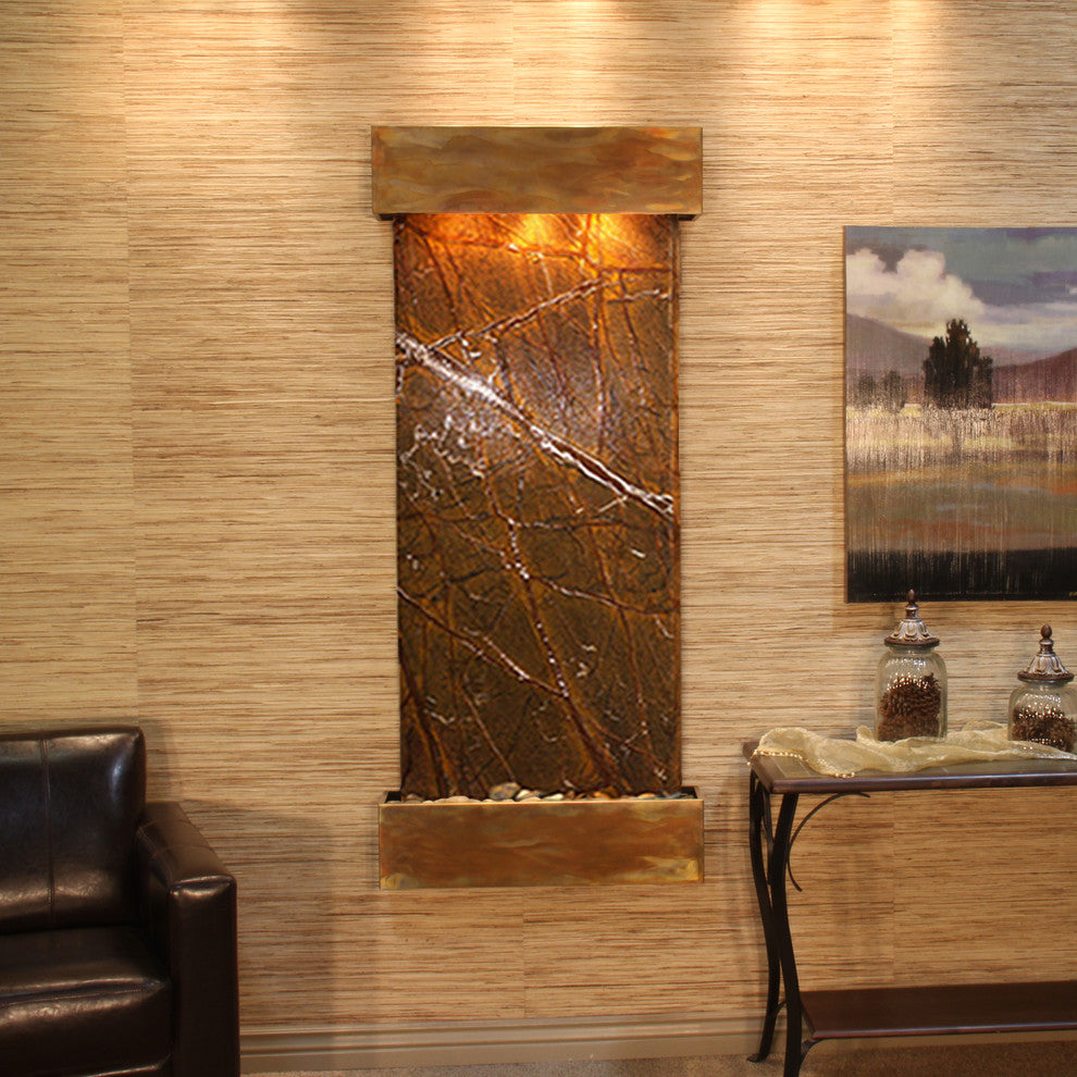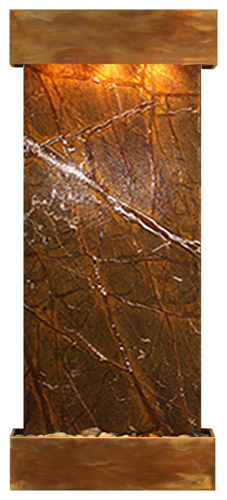 Inspiration Falls Water Fountain, Brown Marble, Rustic Copper, Square
