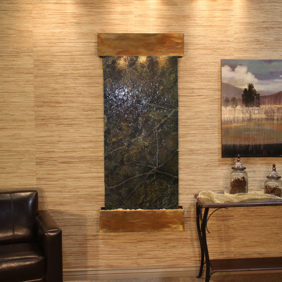 Inspiration Falls Water Fountain, Green Marble, Rustic Copper, Square