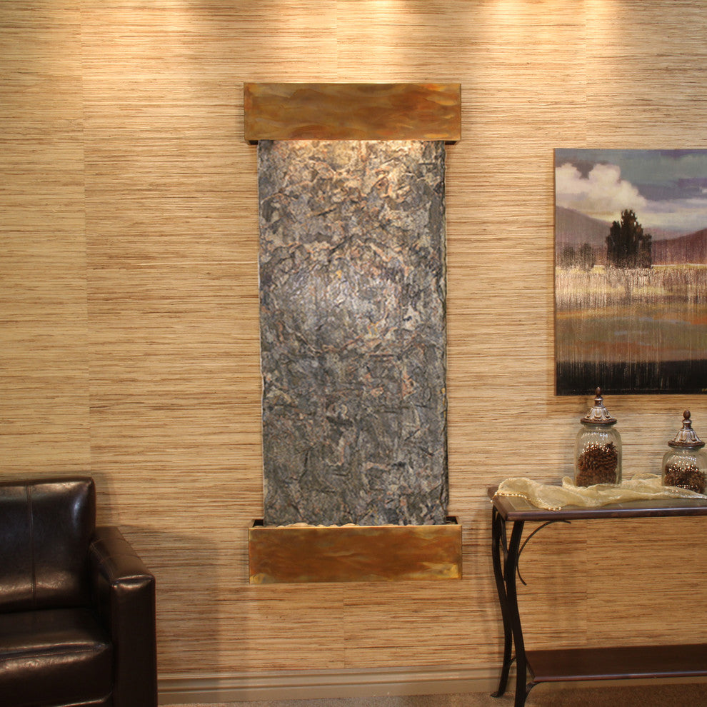 Inspiration Falls Water Fountain, Natural Green Slate, Rustic Copper, Square