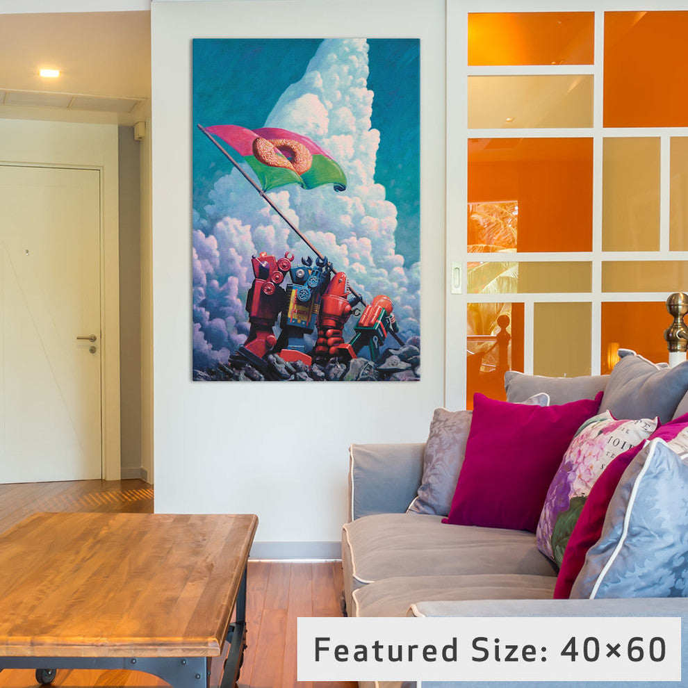 The artwork is crafted with 100-percent cotton artist-grade canvas, professionally hand-stretched and stapled over pine-wood bars in gallery wrap style - a method utilized by artists to present artwork in galleries. Fade-resistant archival inks guarantee perfect color reproduction that remains vibrant for decades even when exposed to strong light. Add brilliance in color and exceptional detail to your space with the contemporary and uncompromising style of iCanvas. Style : "Illustration, Posters, & Graphic Design" Orientation : Vertical Shape : Rectangle Artist : Eric Joyner Height : 40 Width : 26Thickness : 1.5Product Type :Gallery wrapped canvas artNew :Ready to be displayed right out of the box, including free hanging accessories and instructions for a quick and easy hanging process that achieves the best positioning results.Quality Wood Bars :Shrink-resistant wooden-bar frame with tensioning wedges that allow for tightening of the canvas from the reverse side.Dependent and Fast:Produced by the largest US canvas art supplier.