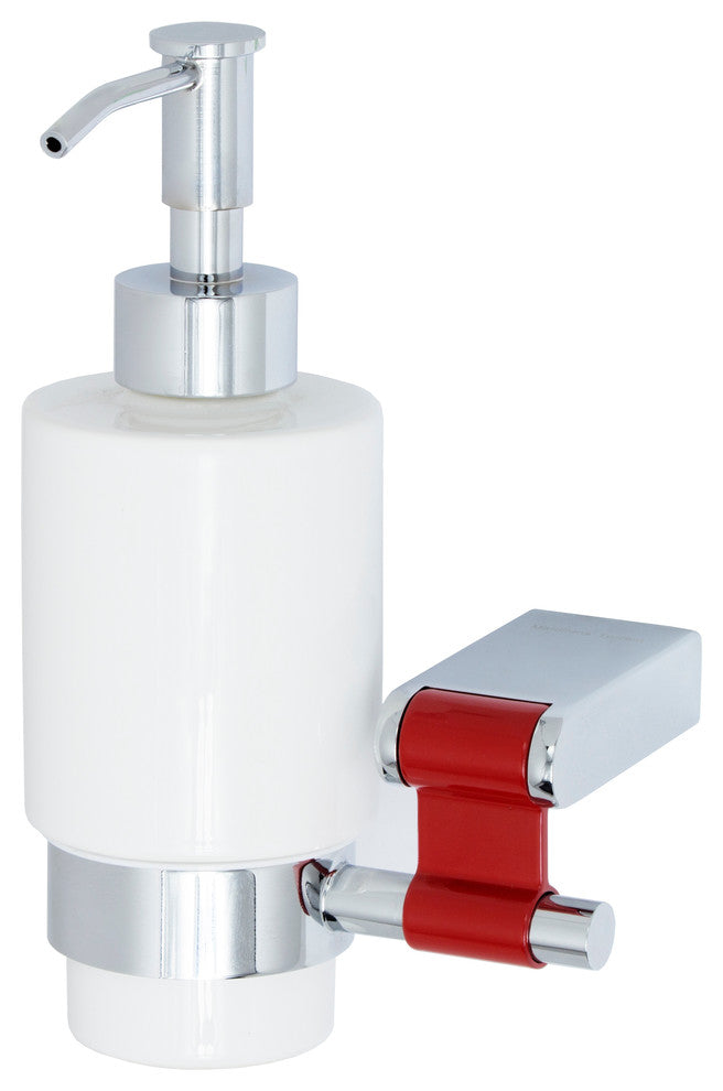 Iris Wall Soap Dispenser, Ceramic and Polished Chrome, Red