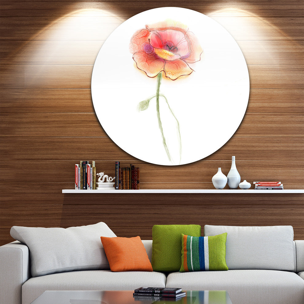 Bring Contemporary Abstraction to your home with this large Circle Metal wall art. This Isolated Watercolor Poppy Flower Metal Artwork makes it the focal point of any room or office.