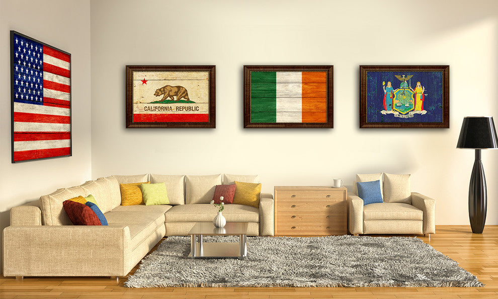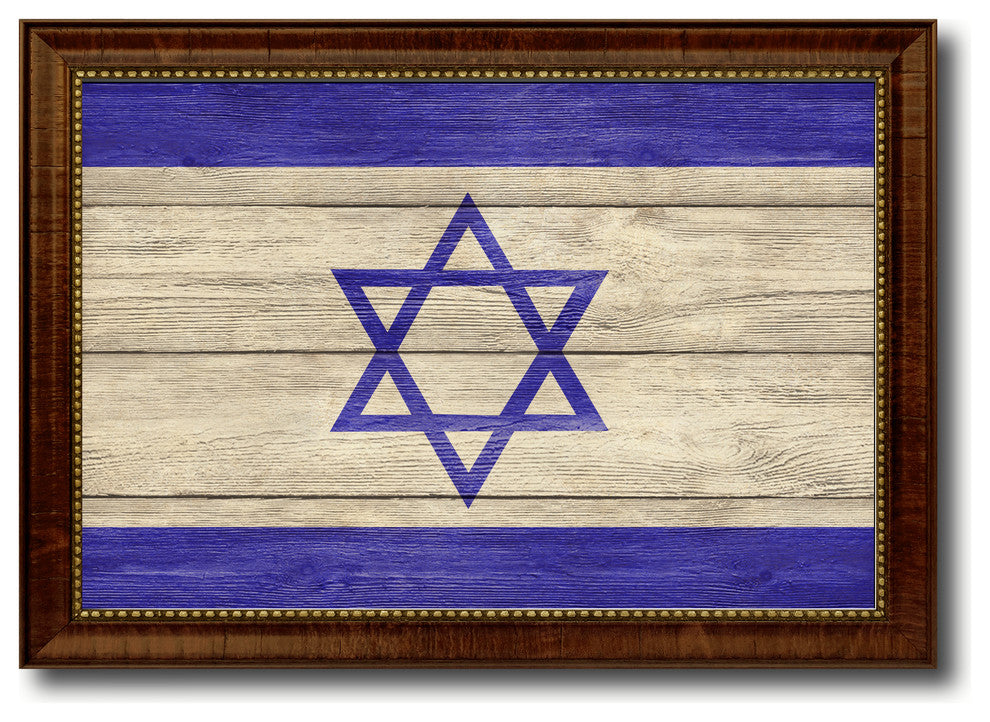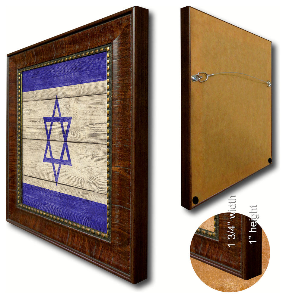 Israel Country Textured Flag Print With Brown Gold Frame, 15"X21"