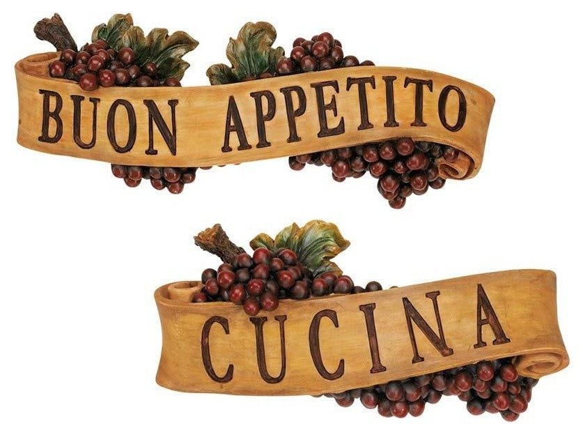 Italian Buon Appetito and Cucina Kitchen Grapes Sculptural Wall Plaque Decor