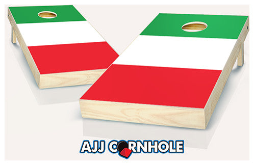 Looking to remember the old country? Then bring home this Italian Flag Cornhole Set! Even Tony Soprano would be jealous of this one. Set comes ready to play with 4 red and 4 royal blue cornhole bags! All sets are made using a premium 2x4 frame and 1/2" sanded plywood playing surface. Each set has folding 2x4 legs secured with galvanized bolts.
