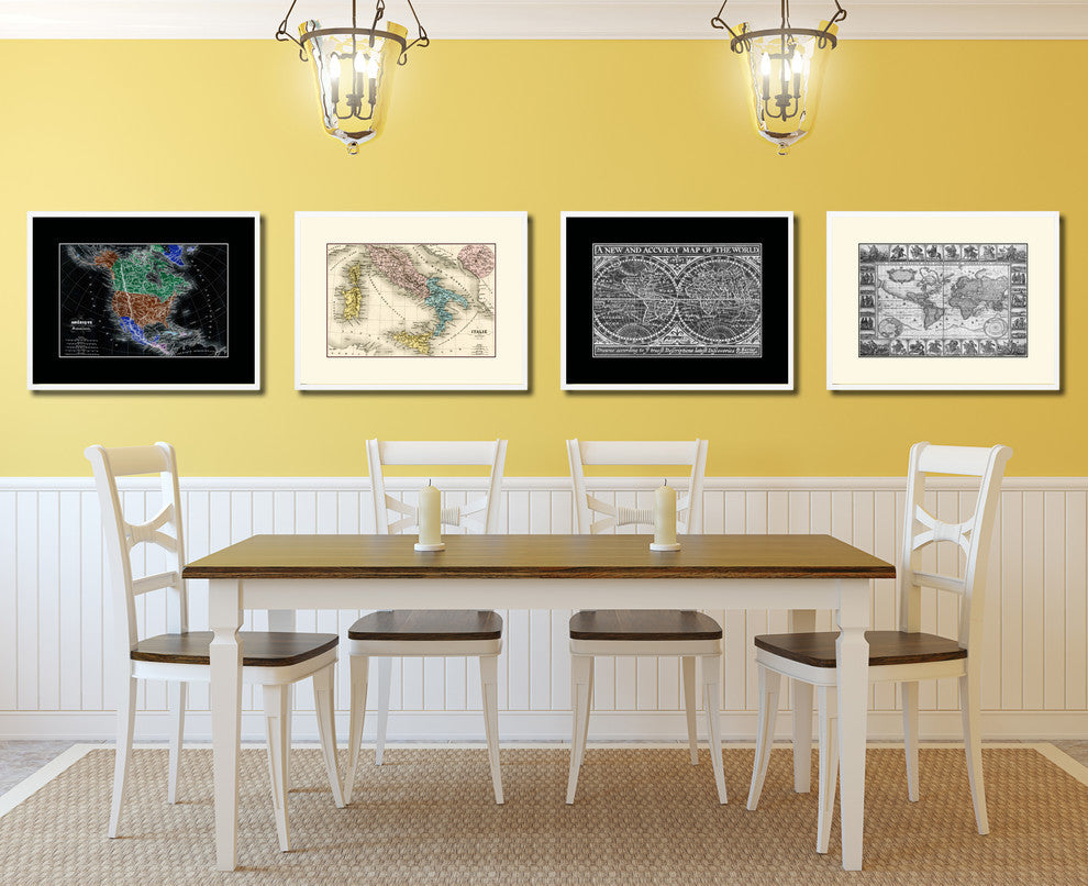 Italy Rome Vintage Old Map Print On Canvas With Picture Frame 28" X 37"