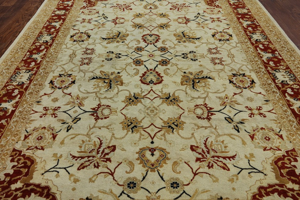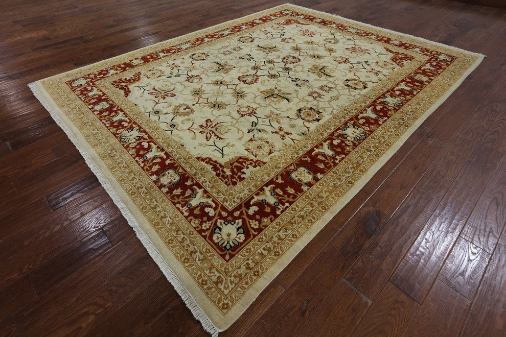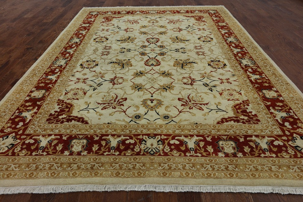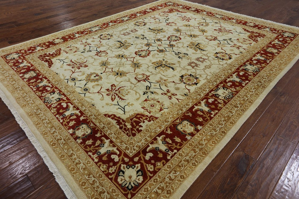 Ivory And Red Chobi Peshawar Rug 8'x10', P2585