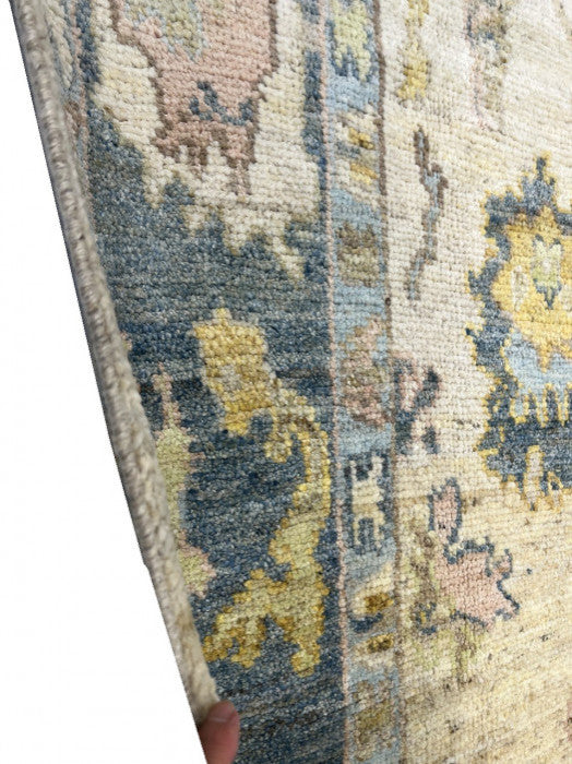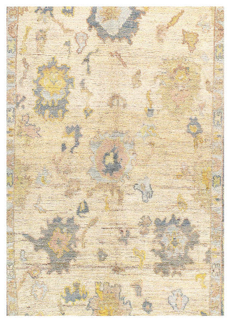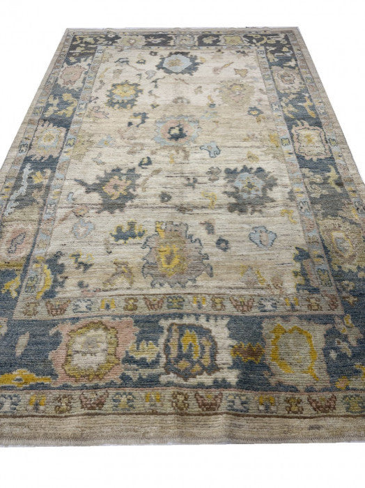 Ivory Color Fine Hand Knotted Oushak Rug 5'7"x9'6"