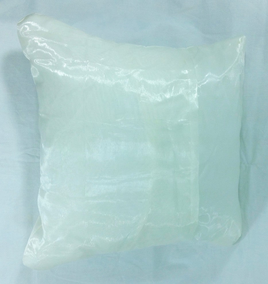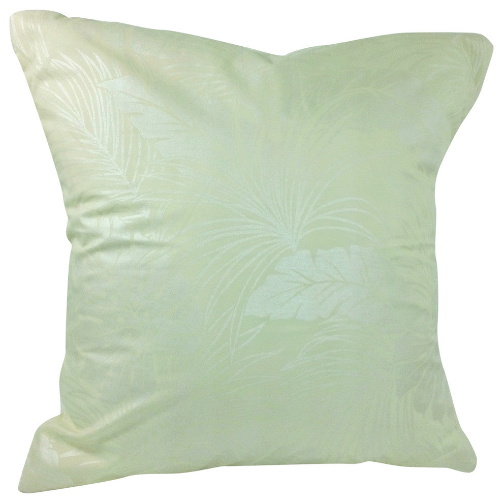 Enhance your bedroom, sitting room, or office with this cream tropical pillow cover with muted silver foil print and lined organza back. Envelope opening. Made in Maui. (Does not include insert).Set includes: One casePattern: Cream background with muted silver foil tropical print, Plain ivory backColour options: CreamRemovable cover (Envelope opening)Pillow shape: Square Dimensions: 17" x 17" (43.1 x 43.1 cm) to fit 18" x 18'' (45.6 x 45.6 cm) insert.Cover: Foil print, Cotton, OrganzaCare instructions: Dry clean or Gentle Hand Wash