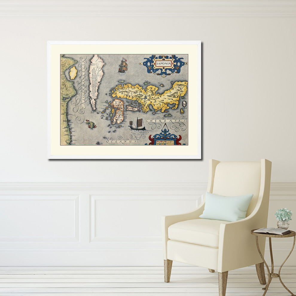 Japan Vintage Old Map Print On Canvas With Picture Frame 28" X 37"