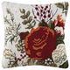 Bouquets of beautiful roses and sprays of flowers in rich jewel tones of red, brown, green, ivory and white tonal shades embellished with rich fern green foliage on a soft white scroll quilted background and can be used all year around and makes a stylish and beautiful Holiday Bedding Ensemble with poinsettias, pine, and holly berries. 18"W X 18"L Square Hooked Rose Pillow; Coordinates with the Jardin Rouge Quilt Set by C & F