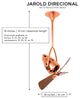 Unique and versatile, the fan head of the Jarold Direcional ceiling fan can be infinitely positioned in a 180-degree arc, forward and reverse, to provide maximum, directional airflow. The Jarold can be hung in small, awkward spaces or in front of HVAC ducts to make more efficient the heating, ventilation or air conditioning of any space.Features: All Matthews Gerbar fans are hand made and not mass produced.Constructed of cast aluminum, heavy spun and stamped steel, this fan carries a limited lifetime warranty.Each Unique Motor Mount and Fan Head Knob is Made of Genuine Marbleized BakeliteFan Head is Infinitely Adjustable 180 Degrees in Forward and Reverse PositionsDistance Between Top of Yolk and Bottom of Blades is as Follows: 15" for Metal Blades; 16" for Wood BladesLutron Decora-Style SFS-5E Fully Variable Wall Switch in White IncludedFlat Ceiling CanopyIncludes 10" field cuttable downrod. Downrods can be easily field cut; they are not threaded. Can be installed with a maximum 30" downrod.Made in Brazil. Assembled and tested with care in the USA.Matthews-Gerbar fans do not oscillate on their own. The fan heads can be pivoted to change the direction.