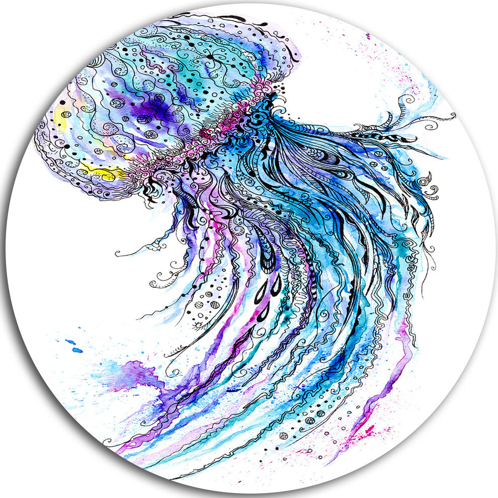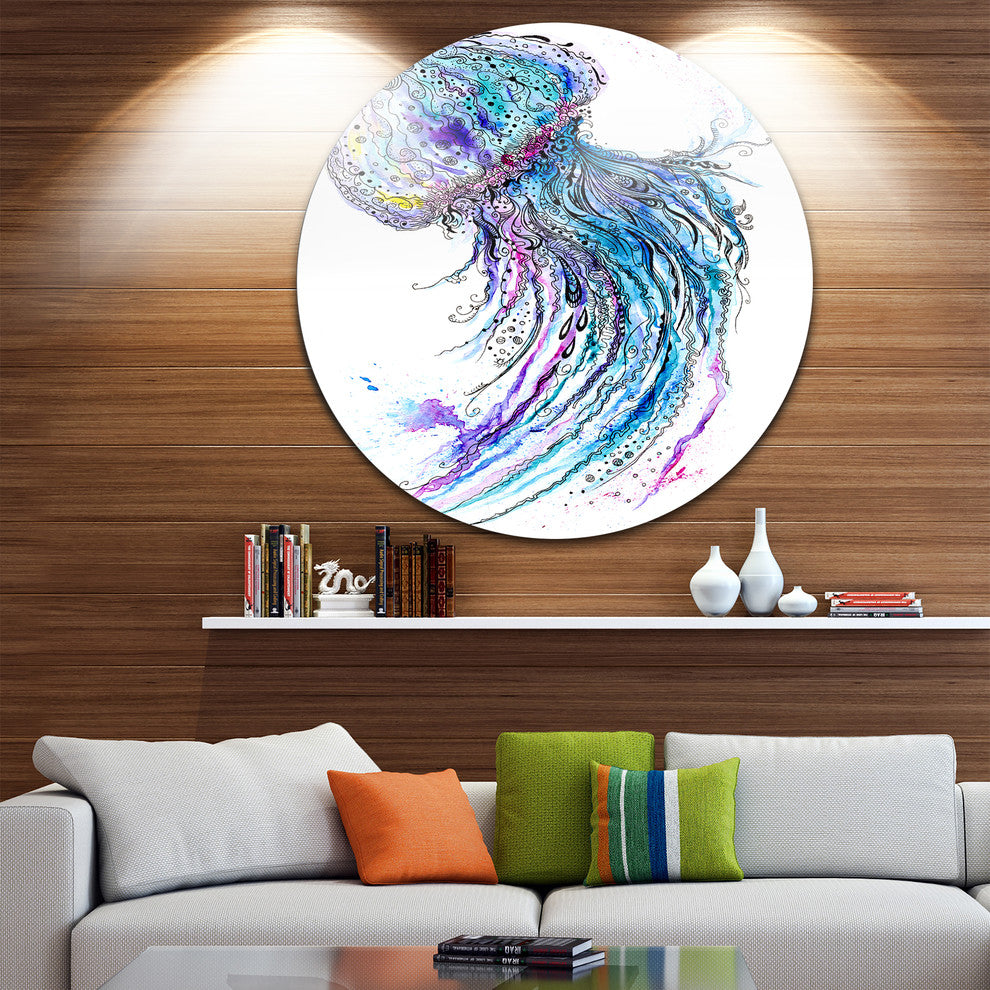 Bring Contemporary Abstraction to your home with this large Circle Metal wall art. This Jelly Fish Watercolor Metal Artwork makes it the focal point of any room or office.