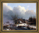 16" x 20" Johann Bernard Klombeck Figures on a Frozen River in Winter framed premium canvas print reproduced to meet museum quality standards. Our Museum quality canvas prints are produced using high-precision print technology for a more accurate reproduction printed on high quality canvas with fade-resistant, archival inks. Our progressive business model allows us to offer works of art to you at the best wholesale pricing, significantly less than art gallery prices, affordable to all. This artwork is hand stretched onto wooden stretcher bars, then mounted into our 3 3/4" wide gold finish frame with black panel by one of our expert framers. Our framed canvas print comes with hardware, ready to hang on your wall. We present a comprehensive collection of exceptional canvas art reproductions by Johann Bernard Klombeck.