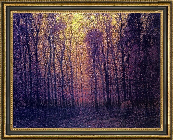 16" x 20" John Joseph Enneking Deep Woods in Fall framed premium canvas print reproduced to meet museum quality standards. Our Museum quality canvas prints are produced using high-precision print technology for a more accurate reproduction printed on high quality canvas with fade-resistant, archival inks. Our progressive business model allows us to offer works of art to you at the best wholesale pricing, significantly less than art gallery prices, affordable to all. This artwork is hand stretched onto wooden stretcher bars, then mounted into our 3 3/4" wide gold finish frame with black panel by one of our expert framers. Our framed canvas print comes with hardware, ready to hang on your wall. We present a comprehensive collection of exceptional canvas art reproductions by John Joseph Enneking.