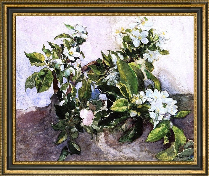 20" x 25" John La Farge Apple Blossoms framed premium canvas print reproduced to meet museum quality standards. Our Museum quality canvas prints are produced using high-precision print technology for a more accurate reproduction printed on high quality canvas with fade-resistant, archival inks. Our progressive business model allows us to offer works of art to you at the best wholesale pricing, significantly less than art gallery prices, affordable to all. This artwork is hand stretched onto wooden stretcher bars, then mounted into our 3 3/4" wide gold finish frame with black panel by one of our expert framers. Our framed canvas print comes with hardware, ready to hang on your wall. We present a comprehensive collection of exceptional canvas art reproductions by John La Farge.
