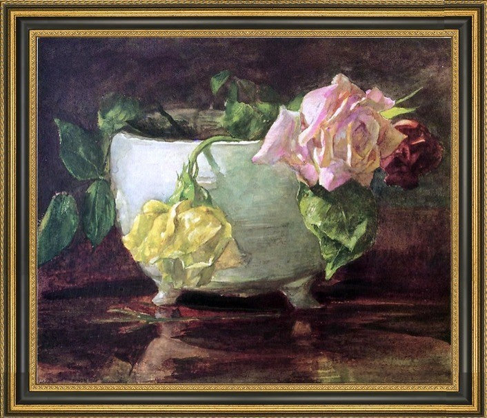 John La Farge Roses in Old Chinese Bowl Framed Premium Canvas Print, 20"x25"