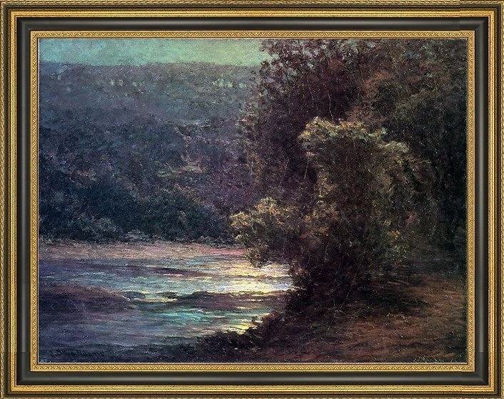 John Ottis Adams Moonlight on the Whitewater Framed Premium Canvas Print, 18"x24