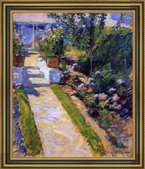 16" x 20" John Twachtman In the Garden framed premium canvas print reproduced to meet museum quality standards. Our Museum quality canvas prints are produced using high-precision print technology for a more accurate reproduction printed on high quality canvas with fade-resistant, archival inks. Our progressive business model allows us to offer works of art to you at the best wholesale pricing, significantly less than art gallery prices, affordable to all. This artwork is hand stretched onto wooden stretcher bars, then mounted into our 3 3/4" wide gold finish frame with black panel by one of our expert framers. Our framed canvas print comes with hardware, ready to hang on your wall. We present a comprehensive collection of exceptional canvas art reproductions by John Twachtman .
