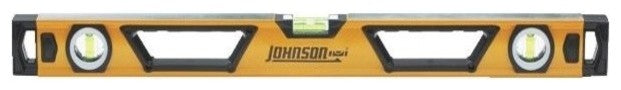 Johnson® box beam levels are built Job Site Tough so you know the solid block acrylic vials won''t break and the anti-shock end caps keep the level frame protected for years of accurate use on the construction site or in the home. This Aluminum Box Level features SurroundView® Vials that reflects ambient light for easy read in dimly lit work environment. Solid block acrylic vials won''t fog, leak or break. Impact resistant abs end caps for durability. Abs hand grips for comfort.• Length: 72"• Aluminum box beam level• Three vials: read plumb, plumb & level• SurroundView® reflects ambient light for easy read• Solid block acrylic vials won''t fog, leak or break• Impact resistant abs end caps for durability• Abs hand grips for comfort• Accuracy up to .029 degrees 0.5 mm/m) in the standard position, .044 degrees 0.750mm/m) in the inverted position.