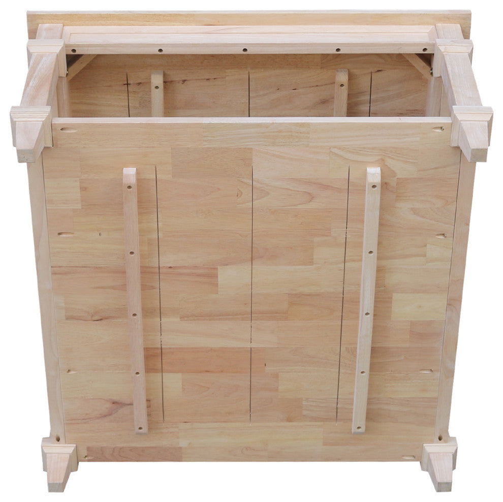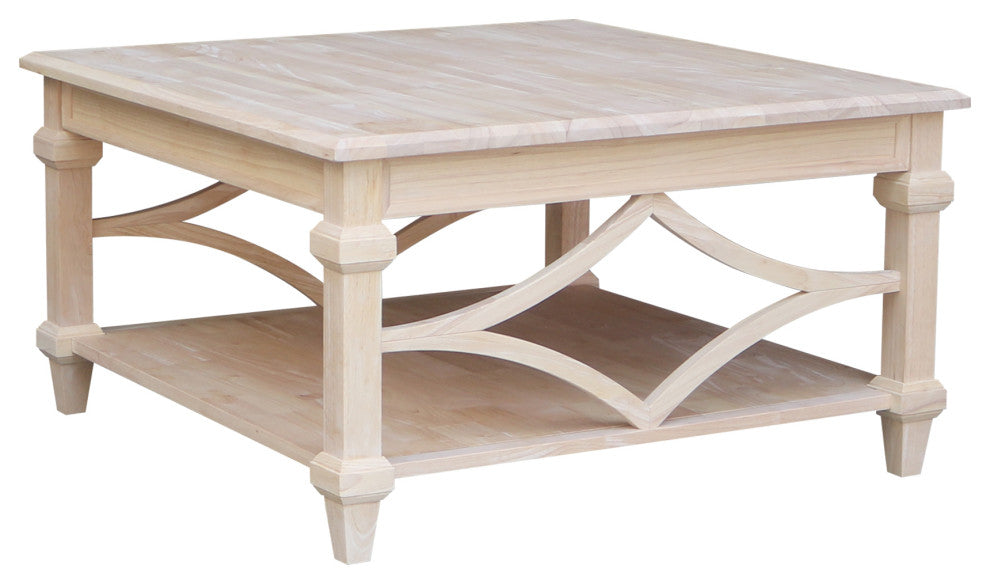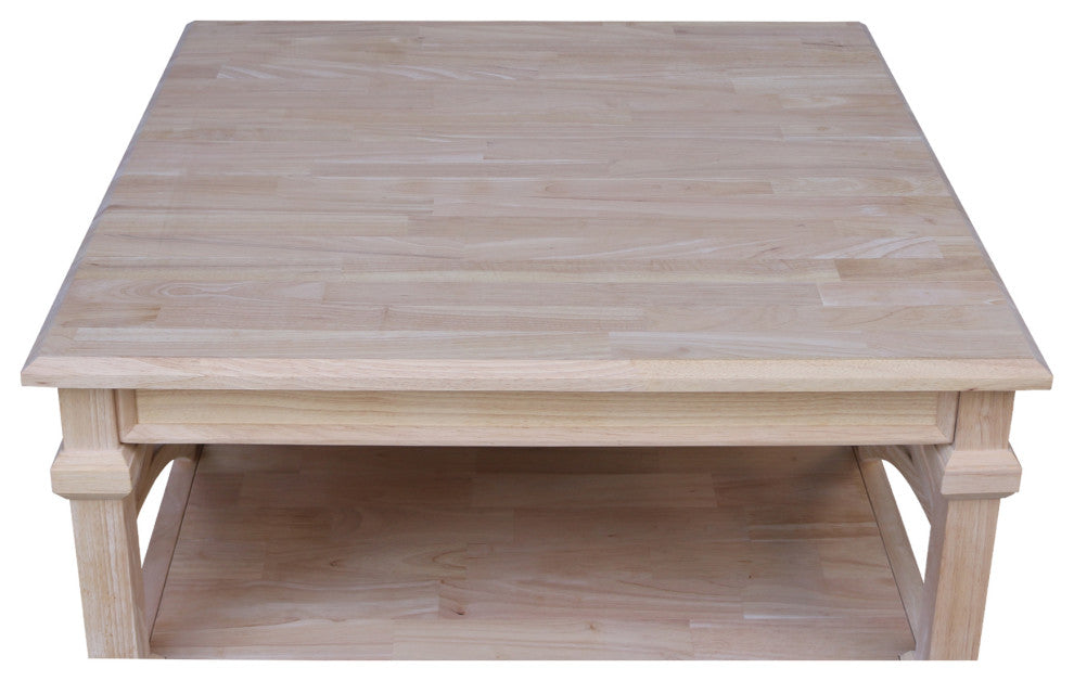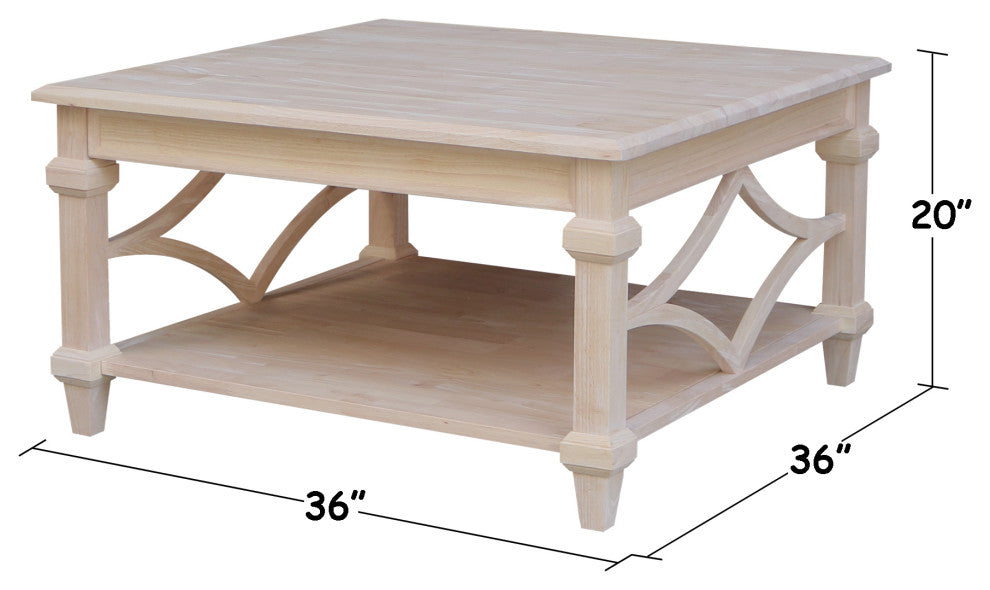 International Concepts home furniture is a beautiful collection of high quality, wood furniture with a traditional and elegant look. Featuring pieces you will be proud of for years to come and will easily complement any decor. All pieces are manufactured from solid Parawood which is more commonly referred to as Rubberwood. Parawood is eco-friendly in terms of being a fantastic renewable resource. As Parawood is considered to be a hardwood, it is actually a truly durable and strong wood.Dimensions: 36"W x 36"D x 20"HMade from solid hardwoodFeatures one shelfSpace between apron and bottom shelf: 11.5"Distance from floor to bottom shelf: 3.7"Size of shelf: 30.9w x 33.2d