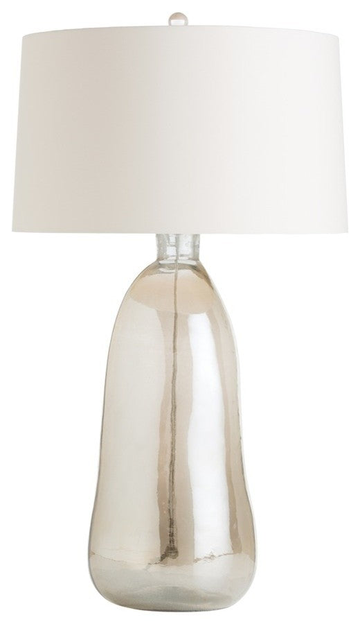 This irregular mouth blown smoke luster glass lamp is a great neutral option for monochromatic interiors. The lined putty microfiber shade with hand rolled edges blends perfectly with the glass color.