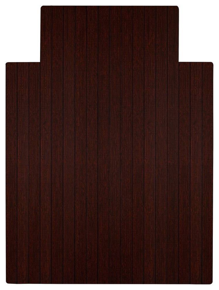 The Jovert Bamboo Roll-Up Chair Mat has introduced eco-friendly style to what was formerly an unattractive and purely functional accessory. Naturally elegant bamboo is more durable than a plastic mat and adds a charming organic touch to any area. Use it to ensure your rolling desk chair can easily glide over any flooring.Color: Dark cherryMaterials: BambooDimensions: W 36" x D 48"