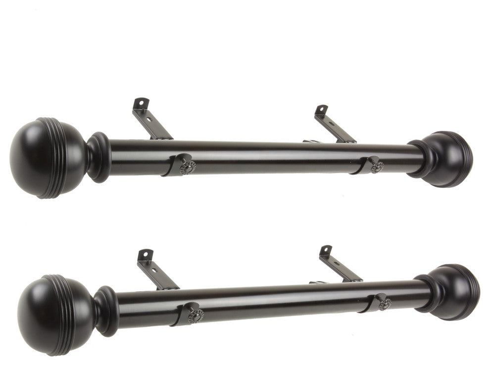 Jovian 1.5" dia. Side Curtain Rod 12-20 inch long (Set of 2), Black