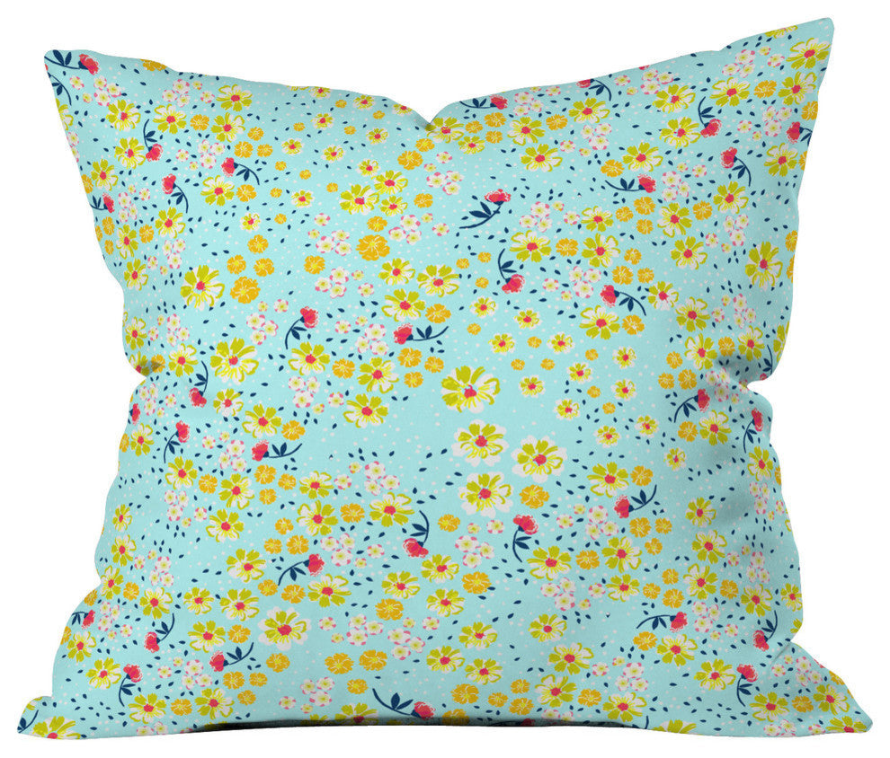Joy Laforme Wild Floral Ditsy In Pale Blue Outdoor Throw Pillow, 26x26x7