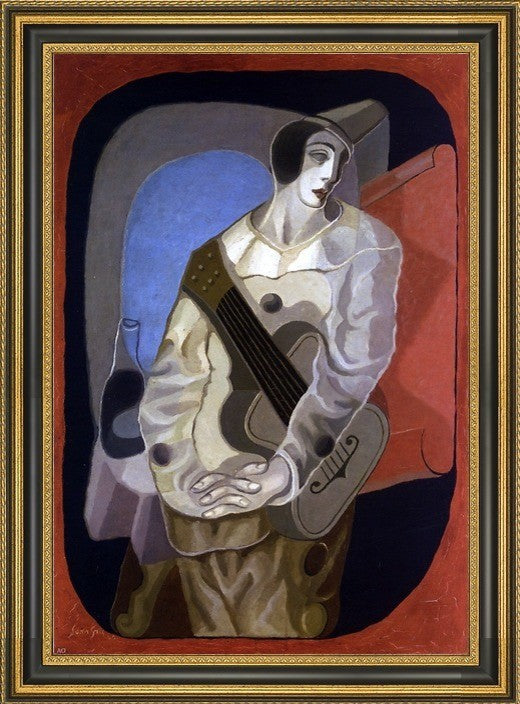 Juan Gris Pierrot with Guitar - 18" x 27" Framed Premium Canvas Print