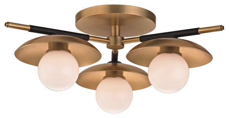 Julien, 3-Light Semi Flush, Aged Brass Finish, Opal Matte Glass Shade
