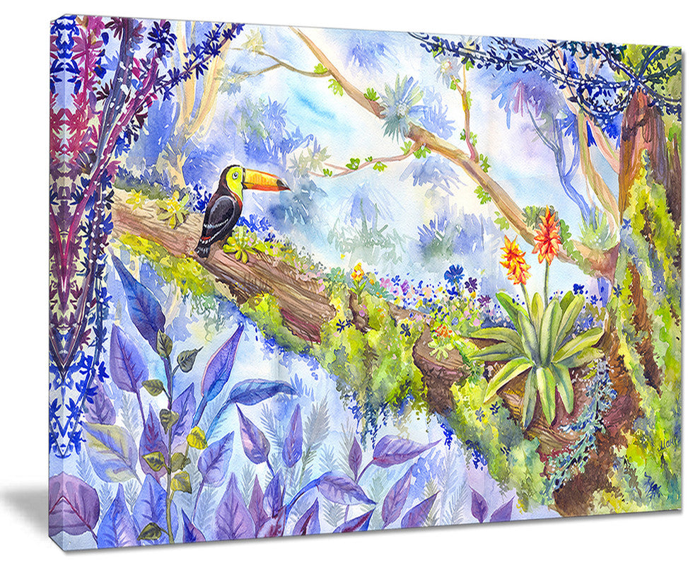 The Jungle with Bird Toucan on Tree canvas art print is sure to make an impression on anyone who sees it. This artwork is gallery wrapped around a 1-inch solid wood frame and arrives carefully packaged and entirely ready to hang on the wall. Design Art only uses the highest resolution and pigments to ensure a crisp colorful print that is never faded or pixelated. This artwork is sure to be a conversation starter in any home or office.