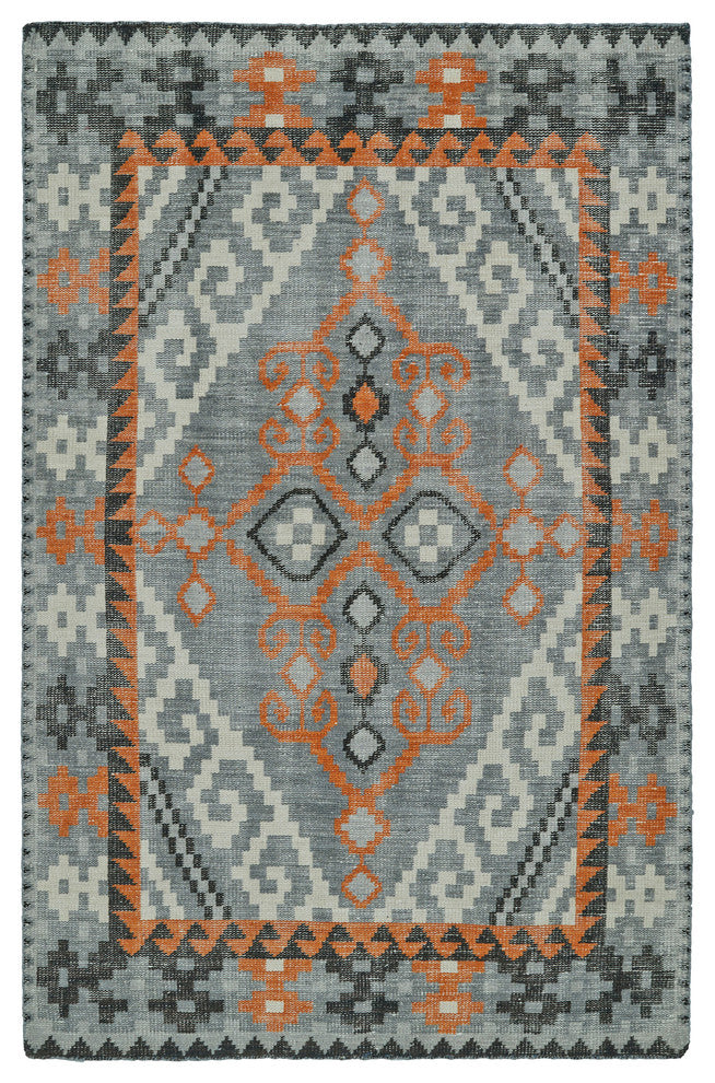 The Relic collection embraces new life with these reenergized classic patterns featuring today�s hottest colors! Hand-knotted in India of 100% wool, each rug is intentionally distressed and over-dyed to recreate these timeless classics. A 100% natural �green� product and completely free of any latex materials. Detailed colors for this rug are Gray, Black, Paprika, Ivory, Lt. Gray.