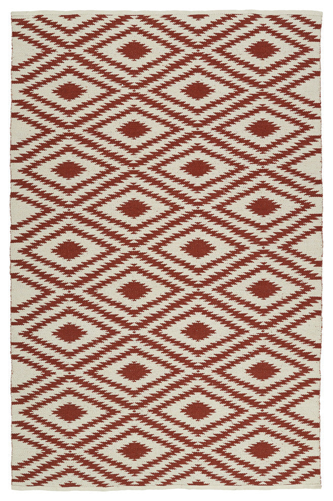Grab your favorite drink, then kick back and relax with this exciting new Indoor/Outdoor flat-weave rug from our Brisa Collection. Completely transform your indoor and outdoor living space with this double-sided rug for years to come. All of these beautiful rugs feature two unique color options to choose from because of the innovative positive/negative color weaving technique. Each rug is handmade in India with 100% PET (recycled) Polyester. Detailed colors for this rug are Ivory, Brick.