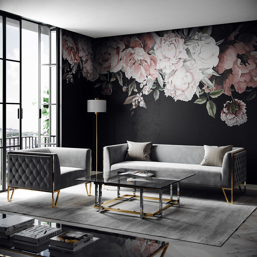 Kara Tufted Sofa, Polished Gold Steel