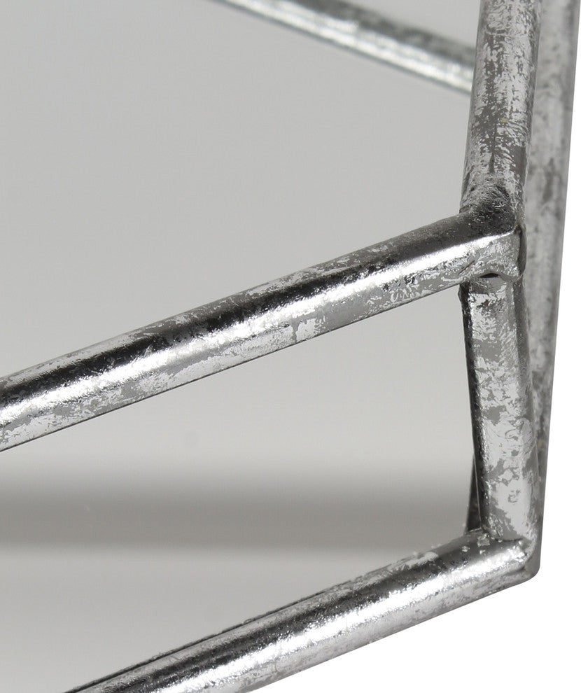 Bring glamour into your home with this mirrored metal tray set. Place these charming trays on your black entrance console table as trinket trays to hold your keys and other odds and ends as you come and go. These trays can also be used as decorative accents on an ottoman or on your vanity for make up organization. Constructed of metal and mirrored glass, these trays are sturdy enough to carry your cocktails from room to room. The larger tray measures 14 inches from the furthest corner to corner and is 2.125 inches high. The smaller tray measures 11 inches from furthest corner to corner and is 2.125 inches high. The trays are designed to nest together for beautiful display, easy transport, or storage.