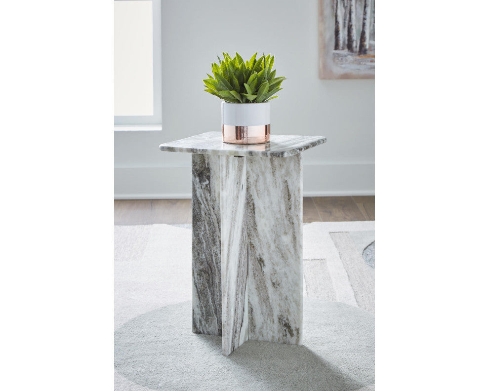 Style to aspire to. This accent table appeals to your eye for artisanal design at an affordable price. The all-marble construction makes it a sculptural addition to your curated space. Whether this table is standing alone or with decor on its smooth top, the beauty of natural stone makes a stunning impression.