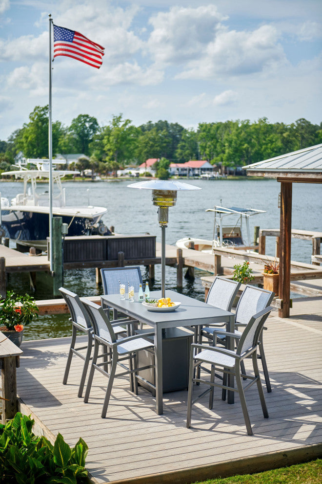 Kendall Sling makes outdoor dining and lounging feel effortless. Elegant but never overdone, its slim frame and clean, straight lines bring a modern yet inviting touch to any space. Designed for both entertaining and relaxation, this collection blends comfort, durability, and timeless appeal. A weatherproof, powder-coated aluminum frame ensures lasting resilience so that you can enjoy alfresco living season after season.Features:•  Overall product dimensions are 25.5" W x 26.5" D x 43.5" H•  Extremely durable 100% powder-coated aluminum frame will not rust, peel, or crack•  High-quality 100% stainless steel hardware•  Quick-drying, replaceable sling fabric lets you update your look while keeping the frame•  Available in multiple color variations•  Stackable design for efficient storage•  Proudly made in the USA with over a century of craftsmanship since 1903Dimensions:Stool•  Assembled Product: 25.5 inches wide x 26.5 inches deep x 43.5 inches high•  Seat Depth: 26.5 inches•  Seat Height: 26 inches•  Back Height: 43.5 inches•  Weight Capacity: 350 pounds