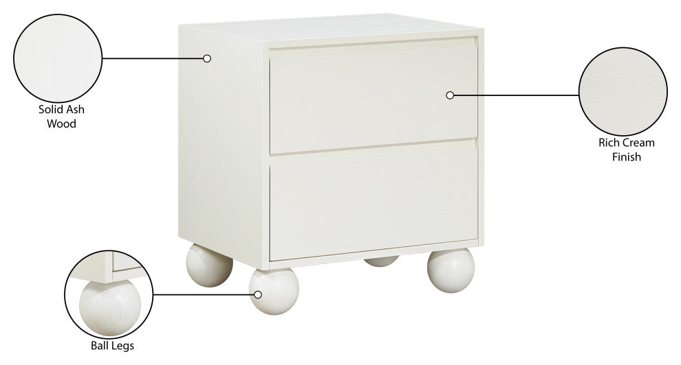 Revamp your bedroom with the sleek design of the Kent Night Stand. Crafted from solid ash wood and finished in a rich cream hue, this night stand features clean lines and a minimalist design that is sure to impress. The ball-shaped legs add a touch of luxury and elegance, creating a truly timeless look that will enhance any living space. Whether you''re looking for a stylish storage solution for your bedroom or a statement piece for your living room, the Kent Cream Chest is the perfect choice.Overall Product Dimensions: 24" W x 19" D x 26" HSolid Ash WoodRich Cream FinishBall LegsArt Deco DesignNatural Wood Grain Variation - No Item has the same grain finish or wood knots due to natural factors.