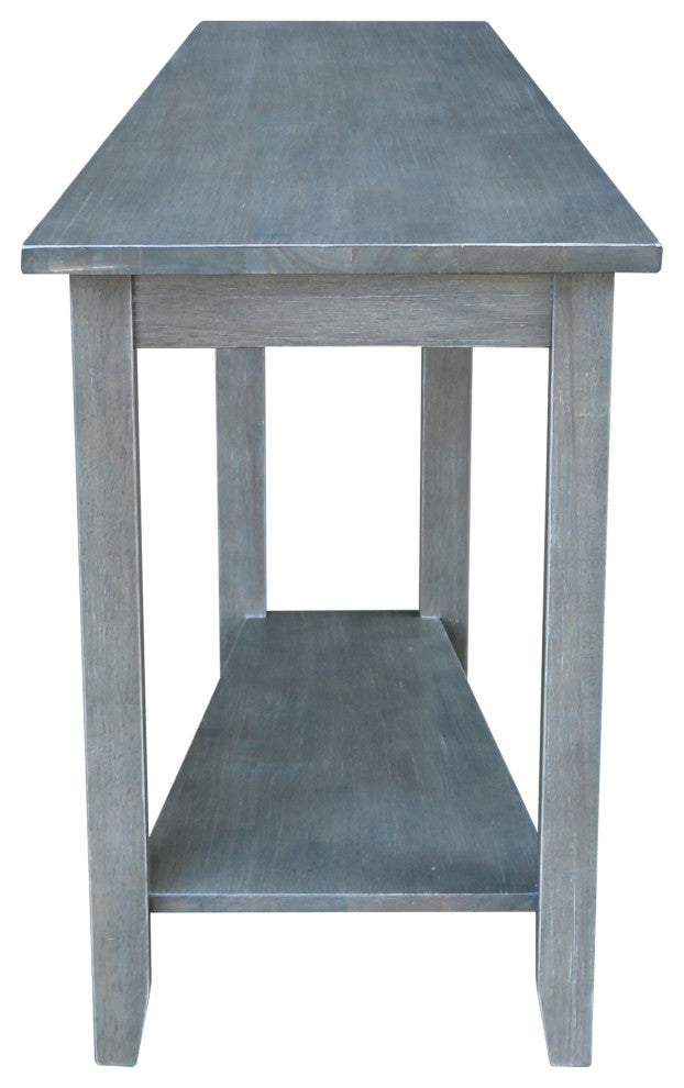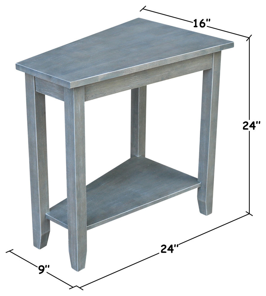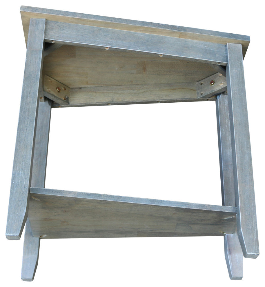 International Concepts home furniture is a beautiful collection of high quality, wood furniture with a traditional and elegant look. Featuring pieces you will be proud of for years to come and will easily complement any decor. All pieces are manufactured from solid Parawood which is more commonly referred to as Rubberwood. Parawood is eco-friendly in terms of being a fantastic renewable resource. As Parawood is considered to be a hardwood, it is actually a truly durable and strong wood.Dimensions: 24"W x 16"D x 24"HMade from solid wood with a butcher block surfaceSize of lower shelf: 4.13''''W 12.02 "w 20.27"dDistance from floor to bottom of lower shelf: 4.29Distance from top of lower shelf to bottom of apron: 15.94