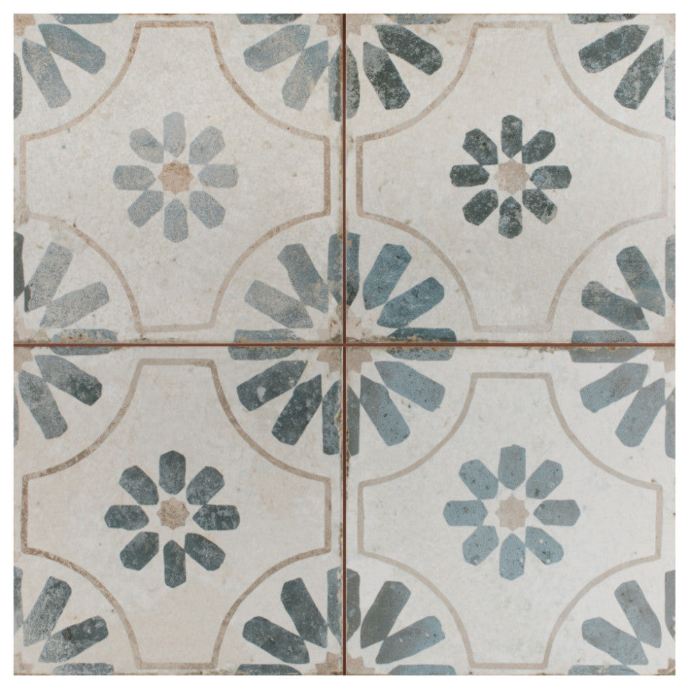 Kings Blume Encaustic Ceramic Floor and Wall Tile, Blue