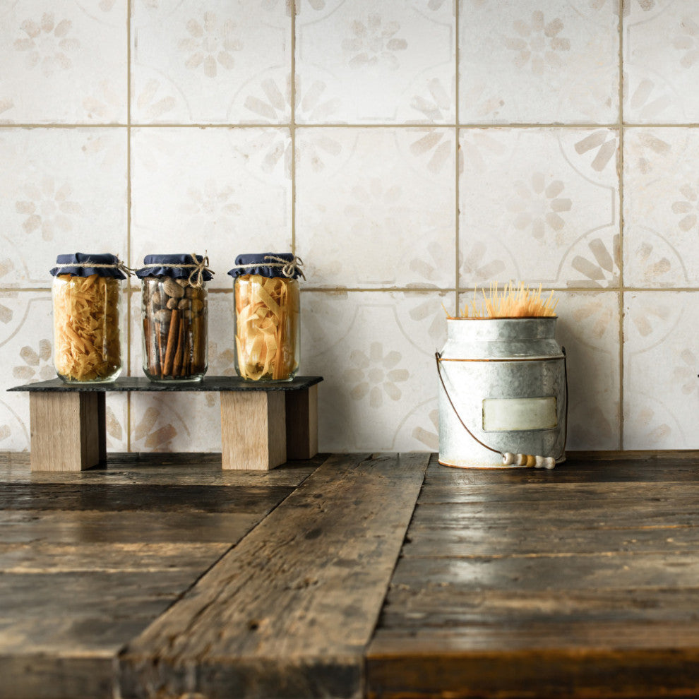 Kings Blume Encaustic Ceramic Floor and Wall Tile, White