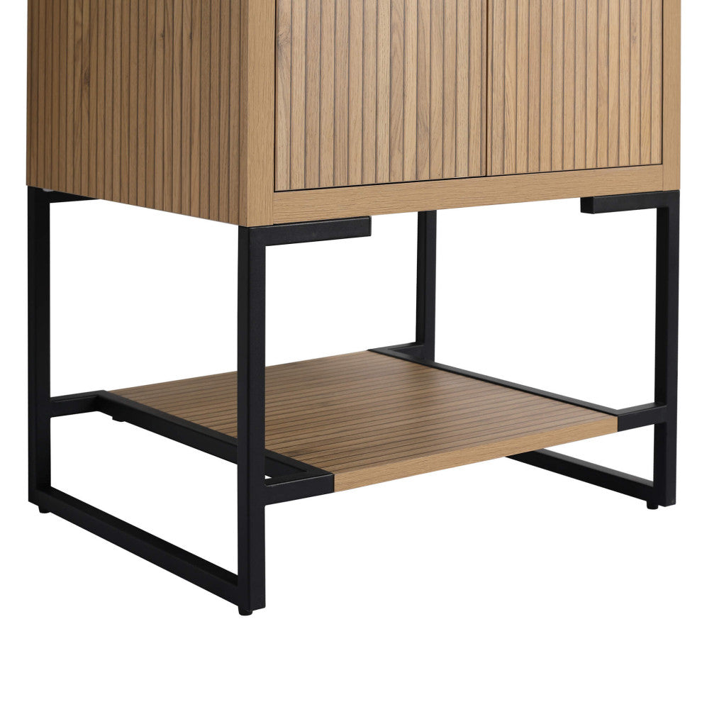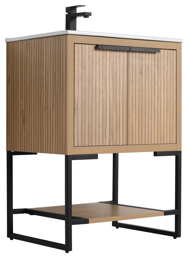 Kingsford Grooved-Look Bath Vanity, Bright Oak, White Ceramic Sink, 24", Doors