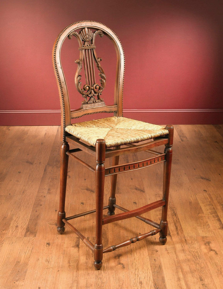 Bring in a classic touch to your dining areas with the Kirksey Bar Stool. Made from solid mahogany. It sports a lyre back design that was popular back in the 1800s but still fits contemporary settings. It makes use of a rush seat for that casual and relaxed feel. The stool is supported by wood turned legs with accent stretchers.Features:Overall product dimensions are 24" W x 21.5" D x 53" HMade from solid mahogany woodIt boasts a lyre back design or more commonly known as a harp backNatural rush seat for that relaxed vibeAvailable in multiple color variationsDimensions:Bar StoolAssembled Product: 24 inches wide x 21.5 inches deep x 53 inches high.