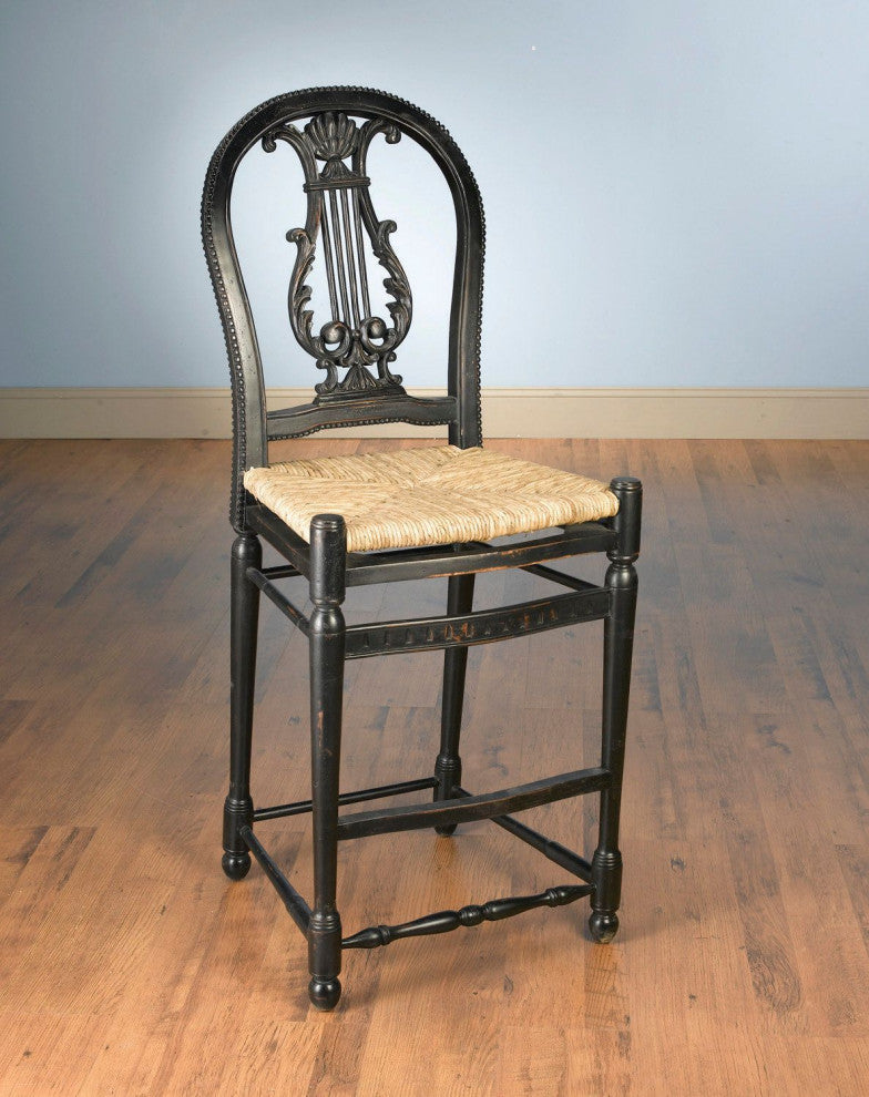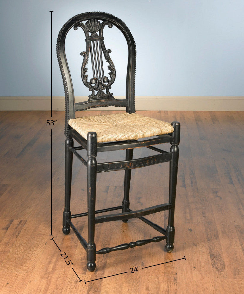 Bring in a classic touch to your dining areas with the Kirksey Bar Stool. Made from solid mahogany. It sports a lyre back design that was popular back in the 1800s but still fits contemporary settings. It makes use of a rush seat for that casual and relaxed feel. The stool is supported by wood turned legs with accent stretchers.Features:Overall product dimensions are 24" W x 21.5" D x 53" HMade from solid mahogany woodIt boasts a lyre back design or more commonly known as a harp backNatural rush seat for that relaxed vibeAvailable in multiple color variationsDimensions:Bar StoolAssembled Product: 24 inches wide x 21.5 inches deep x 53 inches high.
