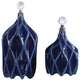Modern style emanates from this set of decorative ceramic bottles with an embossed geometric pattern finished in a glossy cobalt blue and accented with polished nickel and crystal finials. Sizes: Sm-8x13x8, Lg-8x17x8