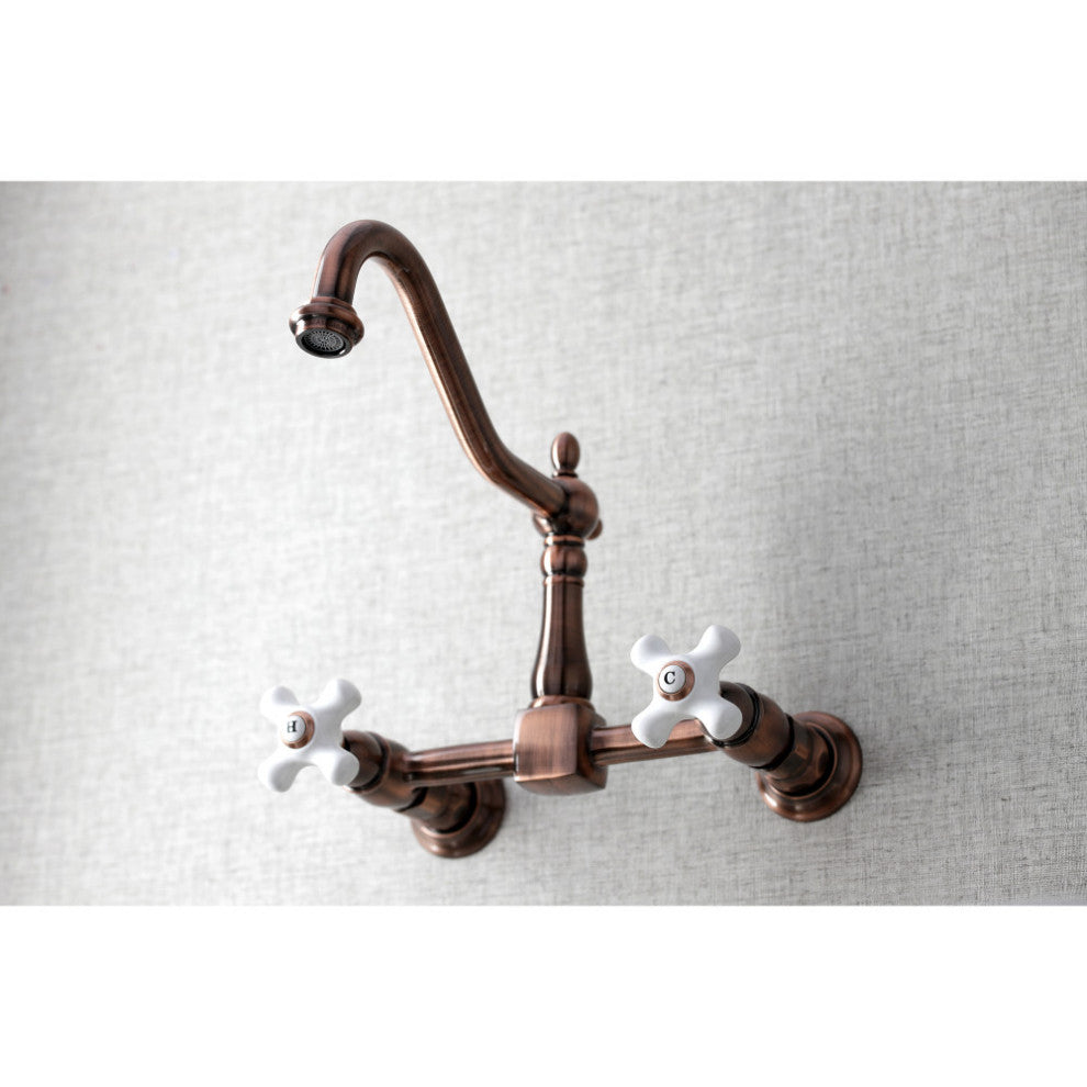 KS124PXAC Heritage Wall Mount Bridge Kitchen Faucet, Antique Copper