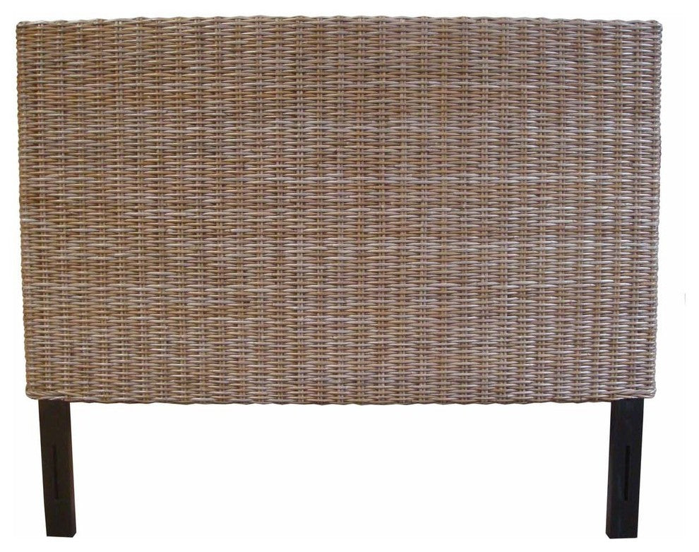 This lovely headboard has a sturdy wood frame construction and is hand woven with Kubu grey rattan, which has now become our most popular weave. The natural Kubu weaving material is a soft gray color, which is achieved naturally by soaking the rattan in local clay and sun-drying it before weaving. A clear topcoat preserves the color and protects the weave.